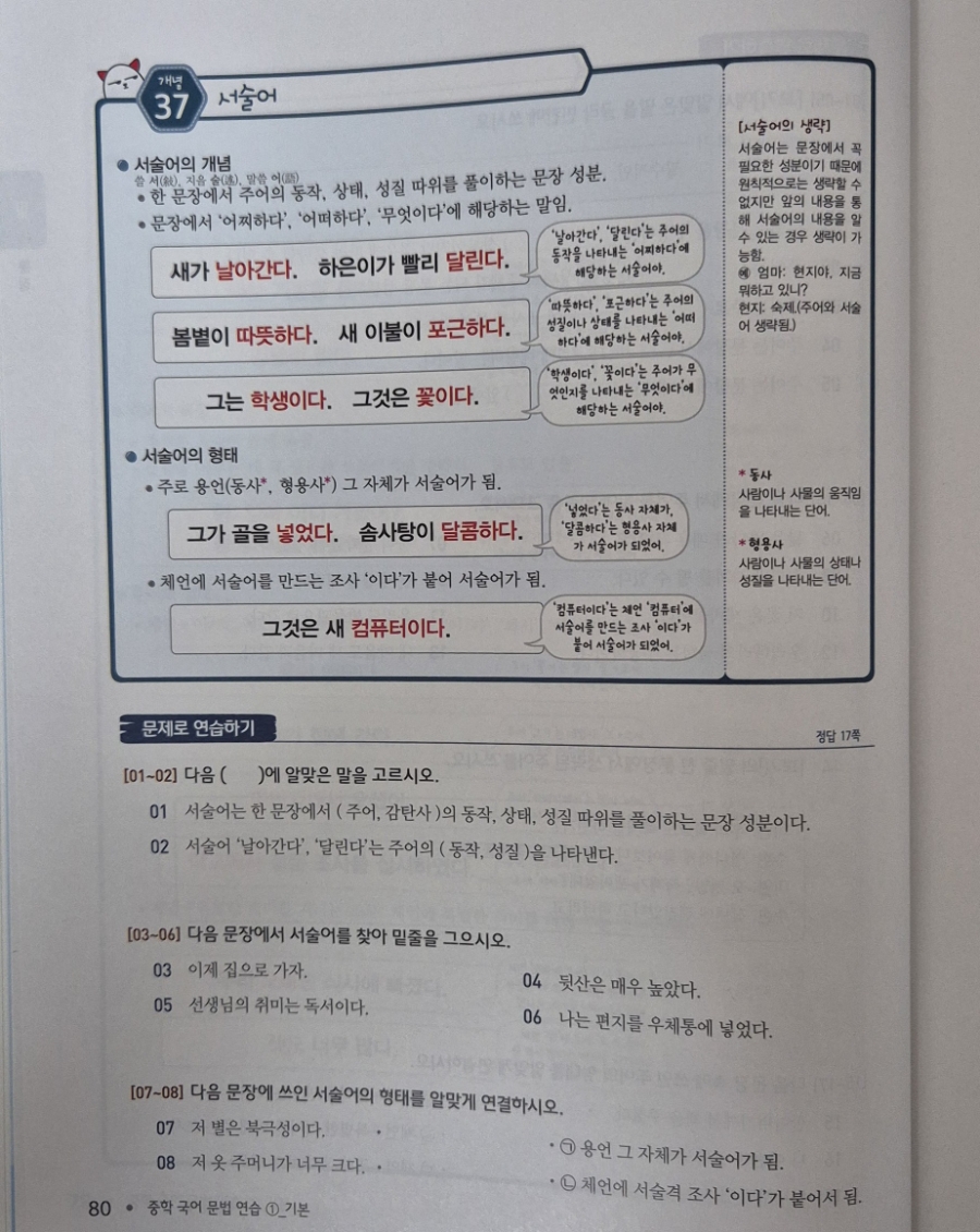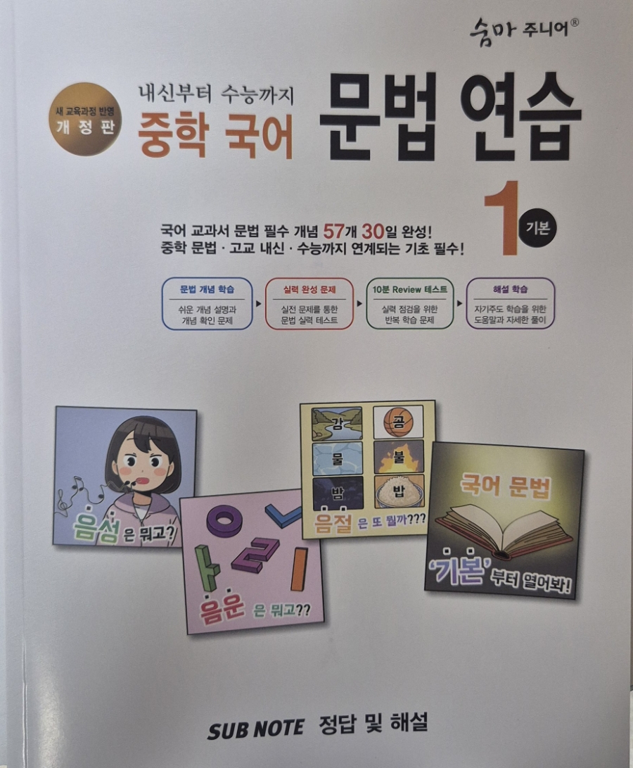 예비중학생을 위한 국어문법문제집 숨마주니어 중학국어 문법연습 1기본 추천
