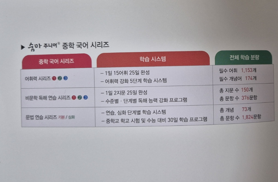 | 제목 | 숨마주니어 중학 국어 문법 연습 1 | ||||||||||||||||||||