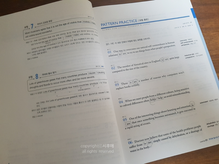 숨마쿰라우데 어법 매뉴얼을 통해서 문장구조를 이해하기 위해 필수적인 문법에 대해 기본 정리를 할수 있고 어법과 관련된 다양한 유형의 문제들을 풀어가면서 문장에 대한 구조를 이해할수 있었던 것 같습니다. 문장구조와 어법은 수능영어의 첫 단계로 차근차근 튼튼하게 먼저 잡고 가봅니다. |