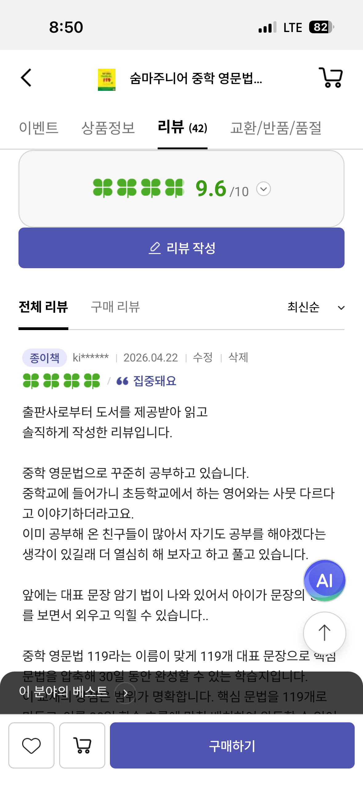 중학국어문제집 EBS 중학 연계 「숨마주니어 비문학 독해 연습」 중1 혼공 후기