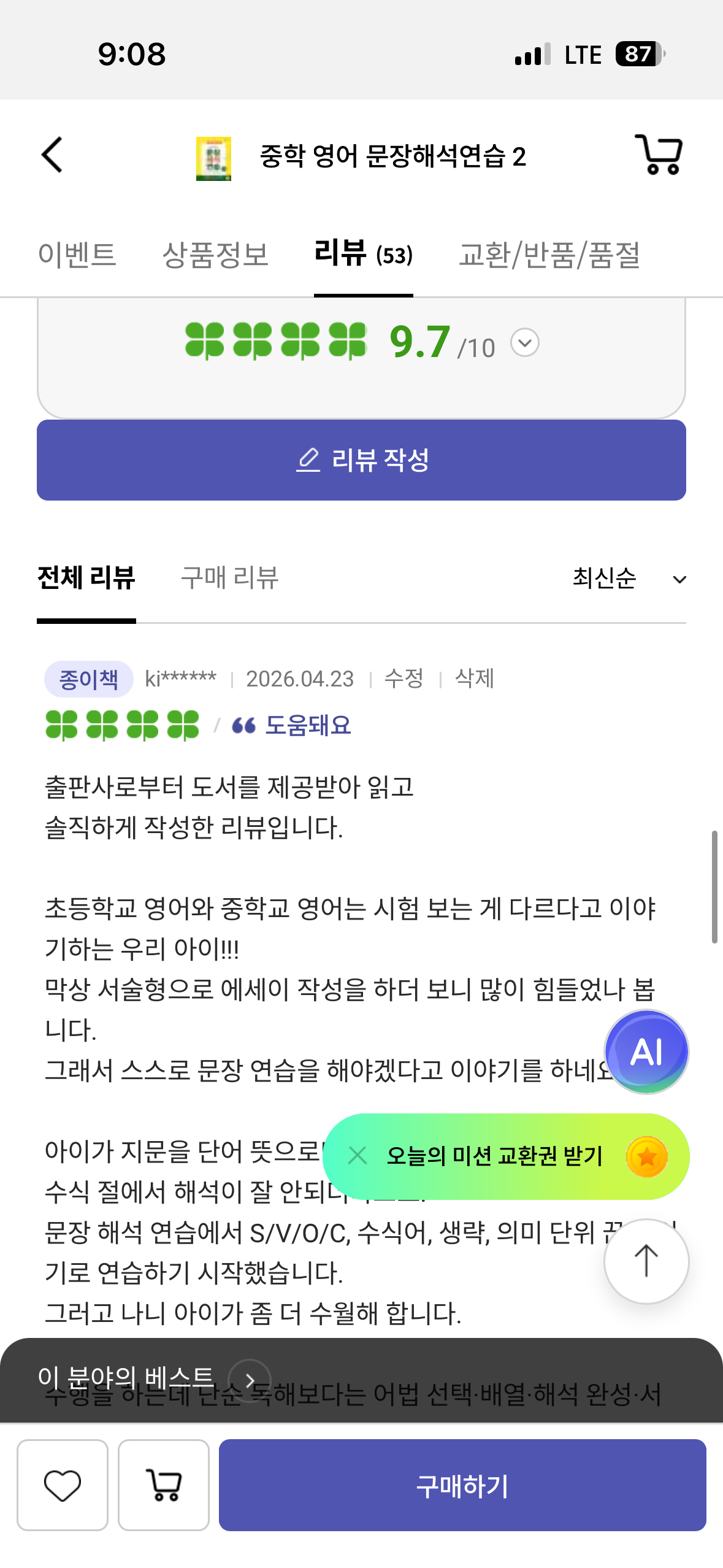 중학국어문제집 EBS 중학 연계 「숨마주니어 비문학 독해 연습」 중1 혼공 후기