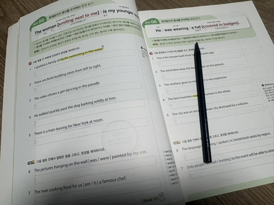 구문 학습 → 해석 연습 → 마무리 테스트의 3단계 구성으로 반복 학습이 가능해 자연스럽게 독해 실력을 키울 수 있어요. 각 문장 구조에 따른 해석 방법을 간단하고 명확하게 설명해주고요.. 배운 내용을 바로 문제에 적용해보며 실력을 점검할 수 있지요. 워크북으로 복습까지 체계적으로 할 수 있고, 정답 및 해설도 자세하게 나와 있어 혼자서 공부하기에도 딱 좋네요.^^