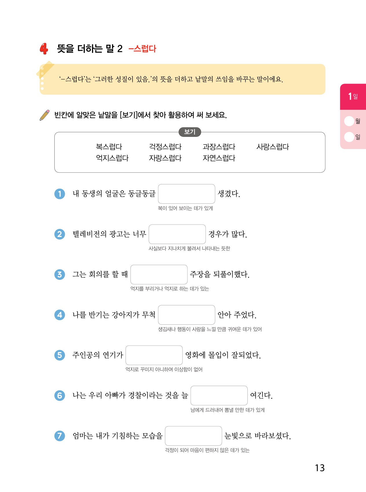 4 뜻을 더하는 말 2 ‘-스럽다’