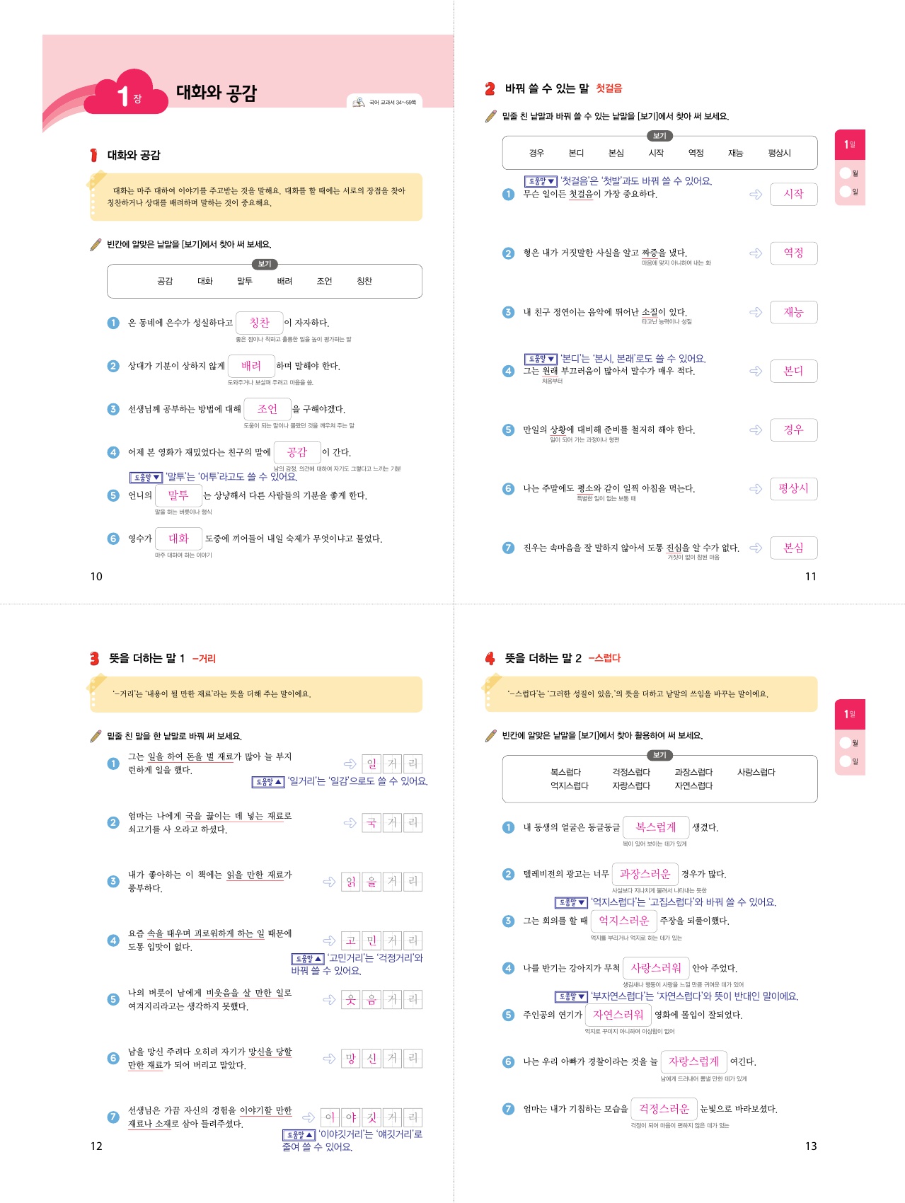 어휘력을 높이는 확인 학습 1~3일차