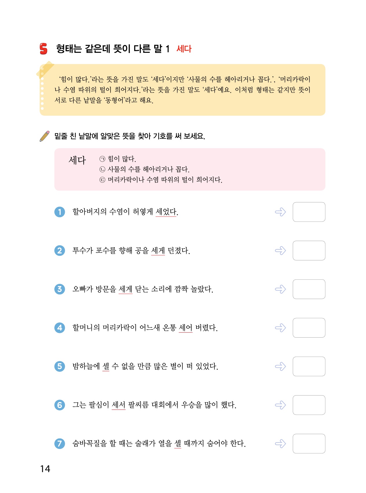 5 형태는 같은데 뜻이 다른 말 1 ‘세다’