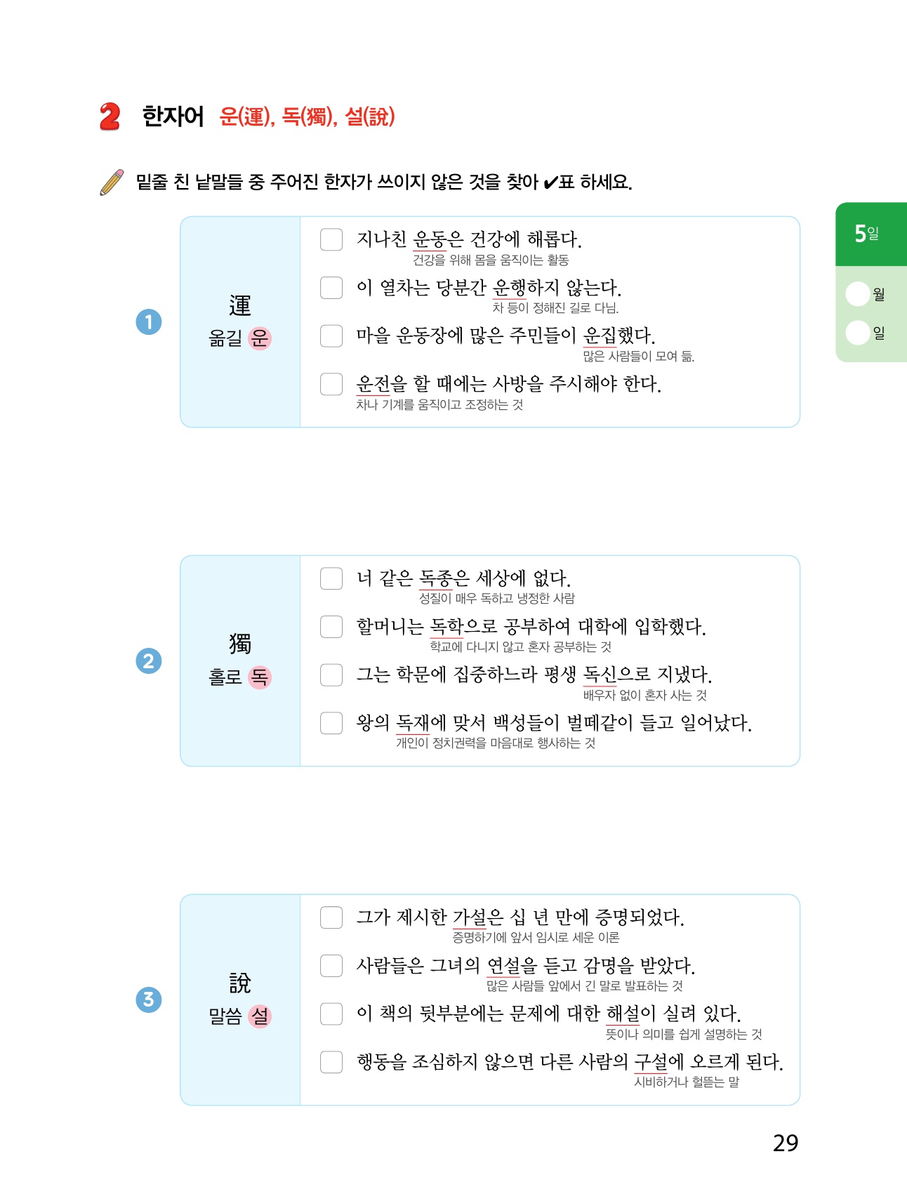 어휘력을 높이는 확인 학습 5~7일차