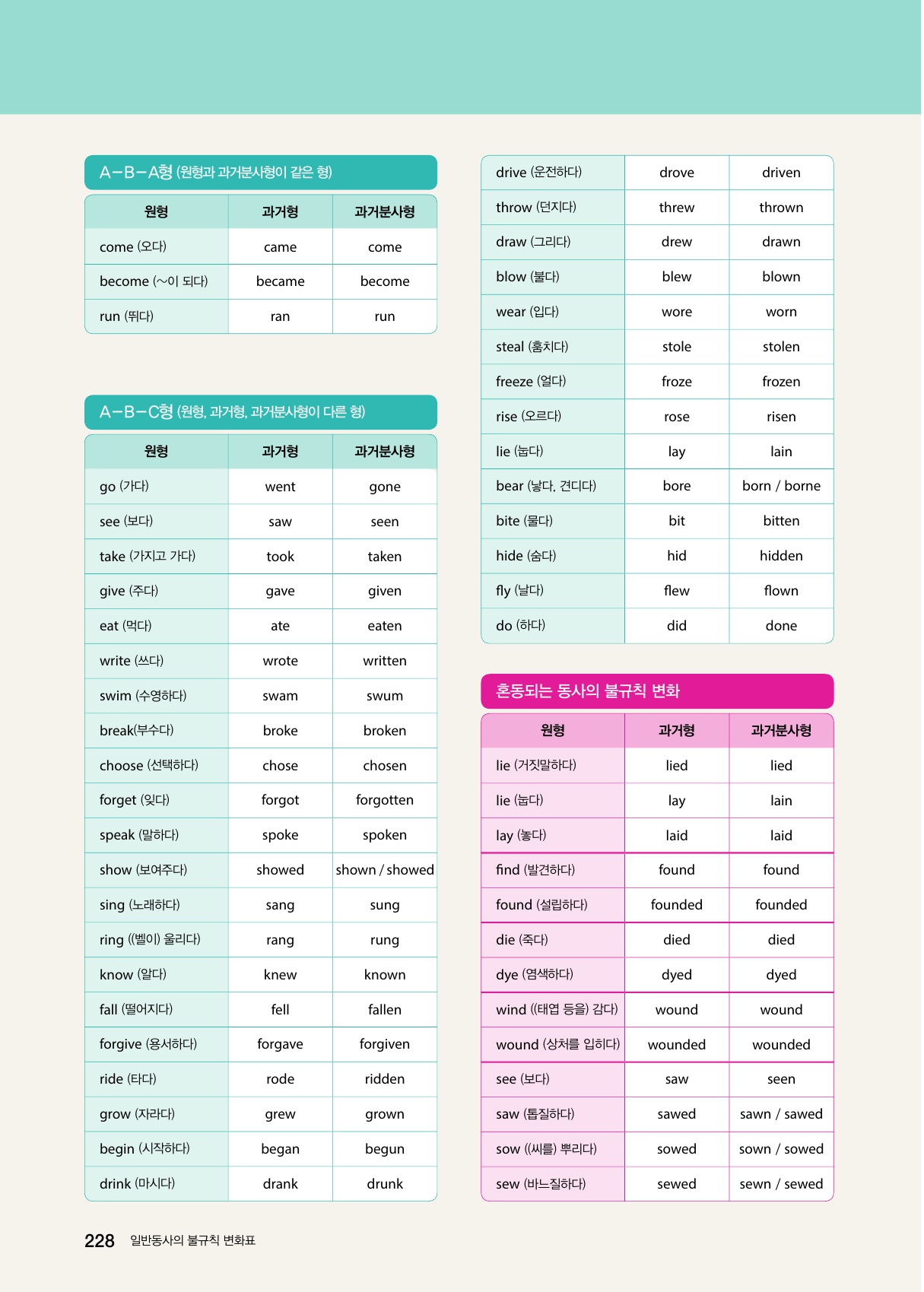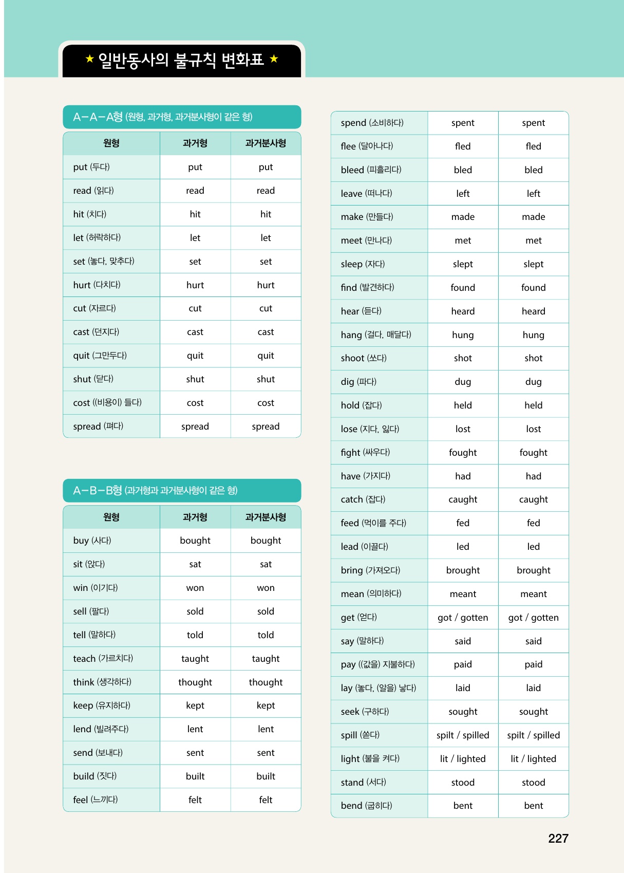 • 일반동사의 불규칙 변화표