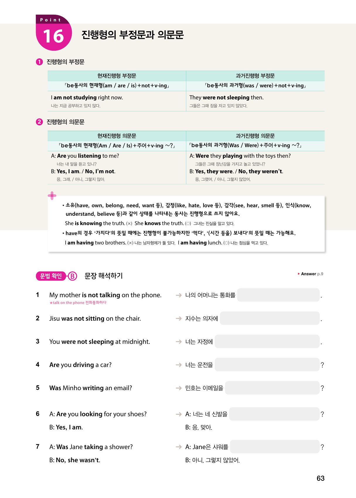 Point 16 진행형의 부정문과 의문문