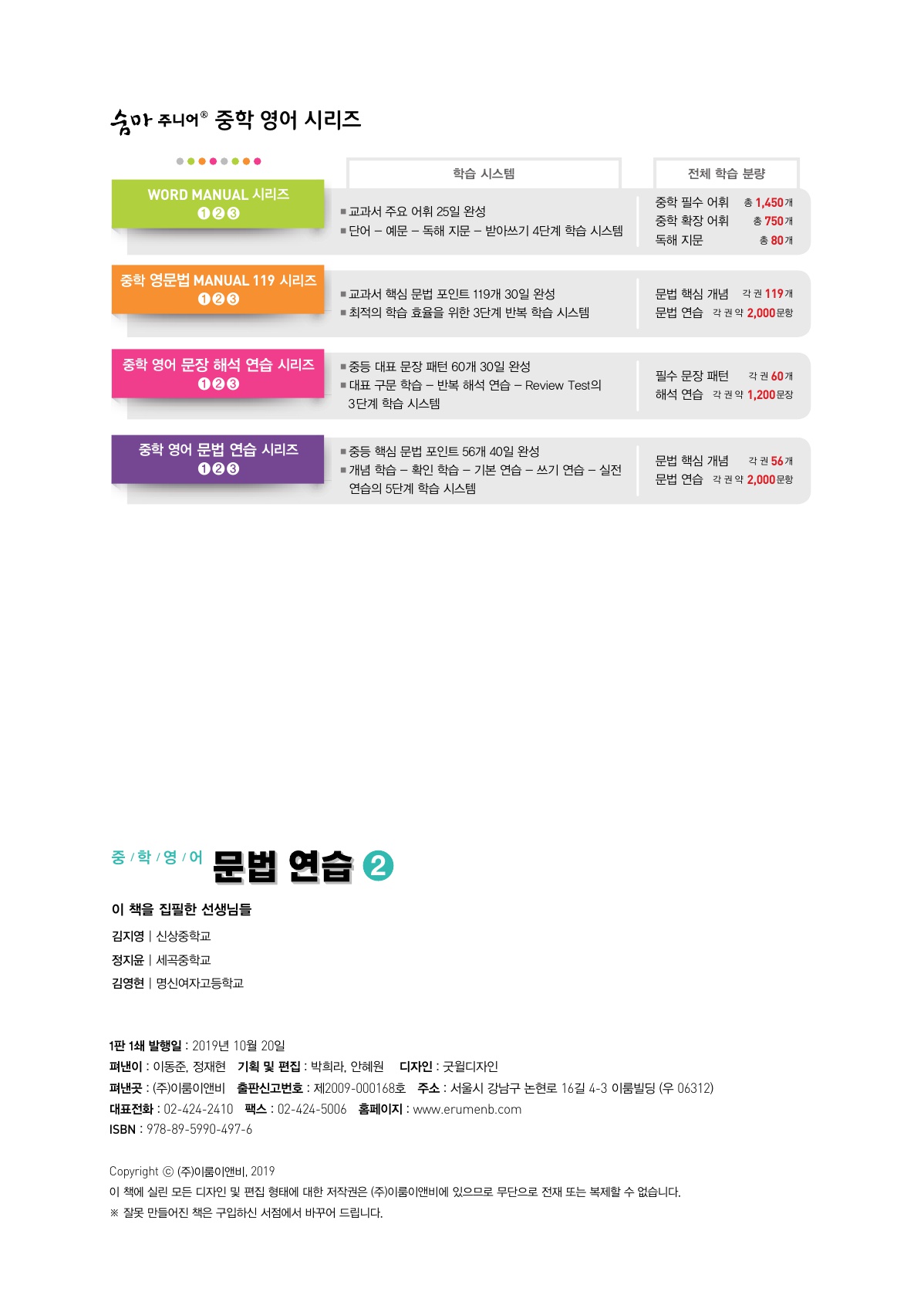 | <숨마주니어 중학영어 문법 연습 2>블 : https://blog.naver.com/youjuhea/224140993830인 : https://www.instagram.com/p/DTSrl3Ck5pn/카 : https://cafe.naver.com/bookchildlove1/52039알라딘 : https://blog.aladin.co.kr/797235288/17010364교보문고 아이디 : youjuhea | |||