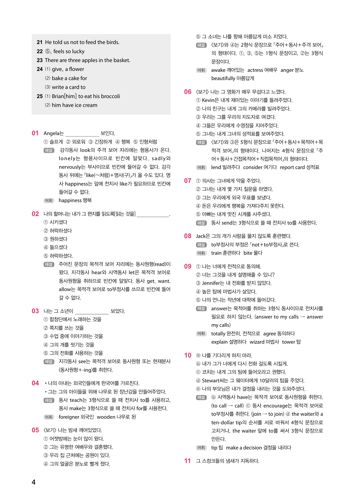 3단계보다 한 단계 높아진 유형들의 문제들을 연습하며 문장의 구조를 익히고, 문법 지식을 확실하게 내 것으로 만듭니다.