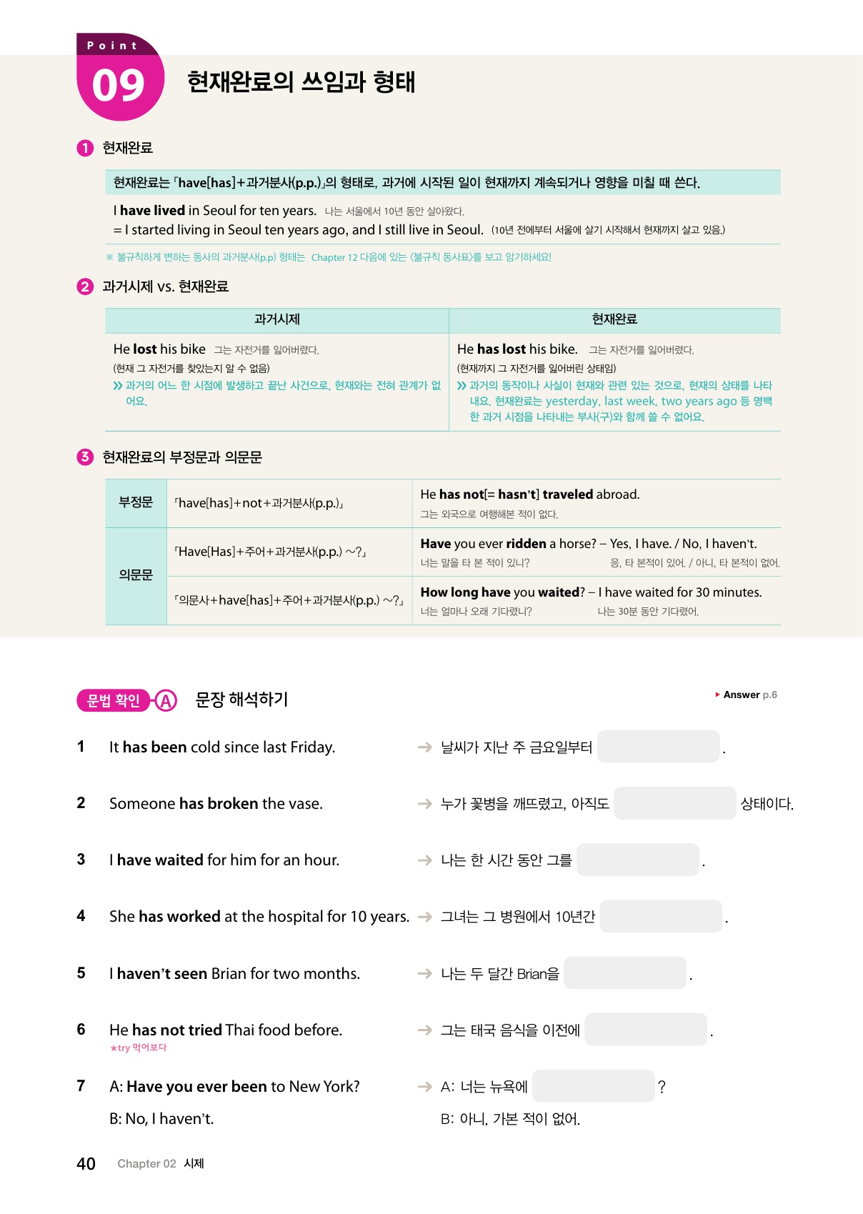 Point 09 현재완료의 쓰임과 형태