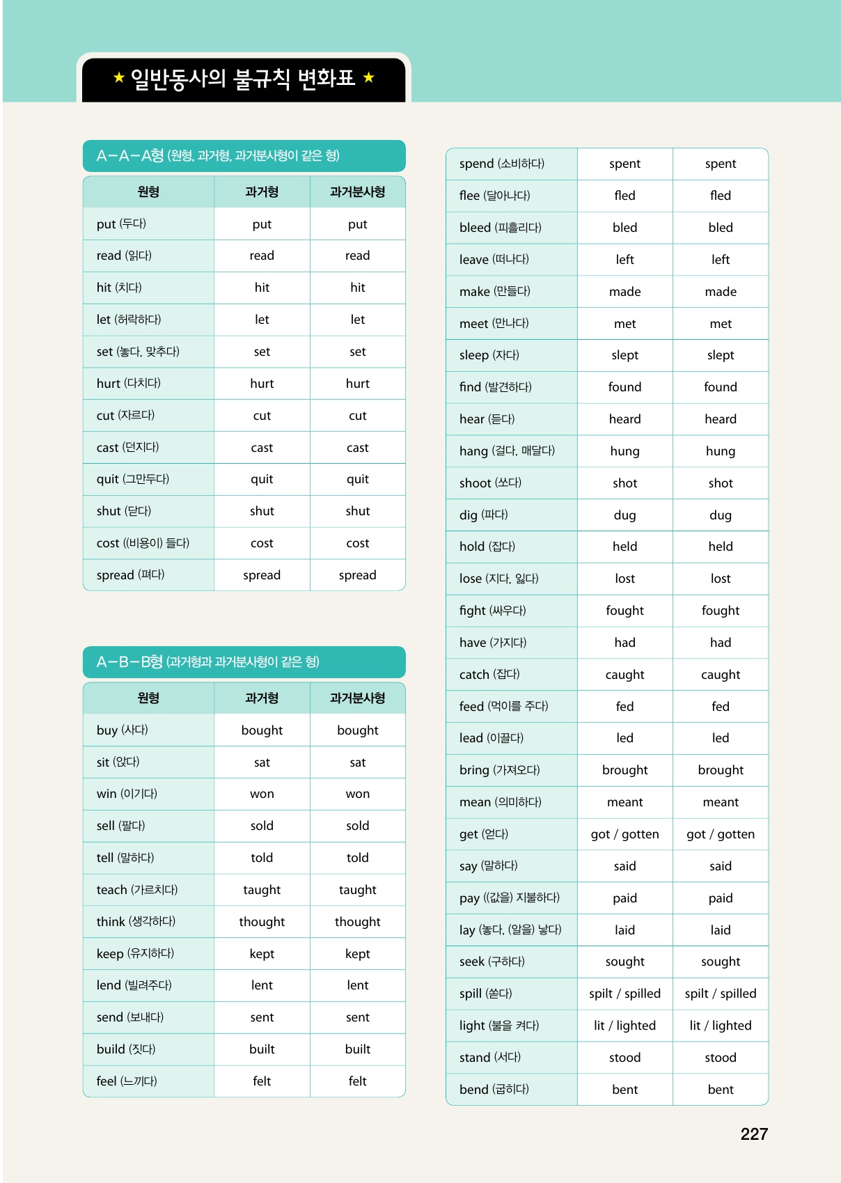 • 일반동사의 불규칙 변화표