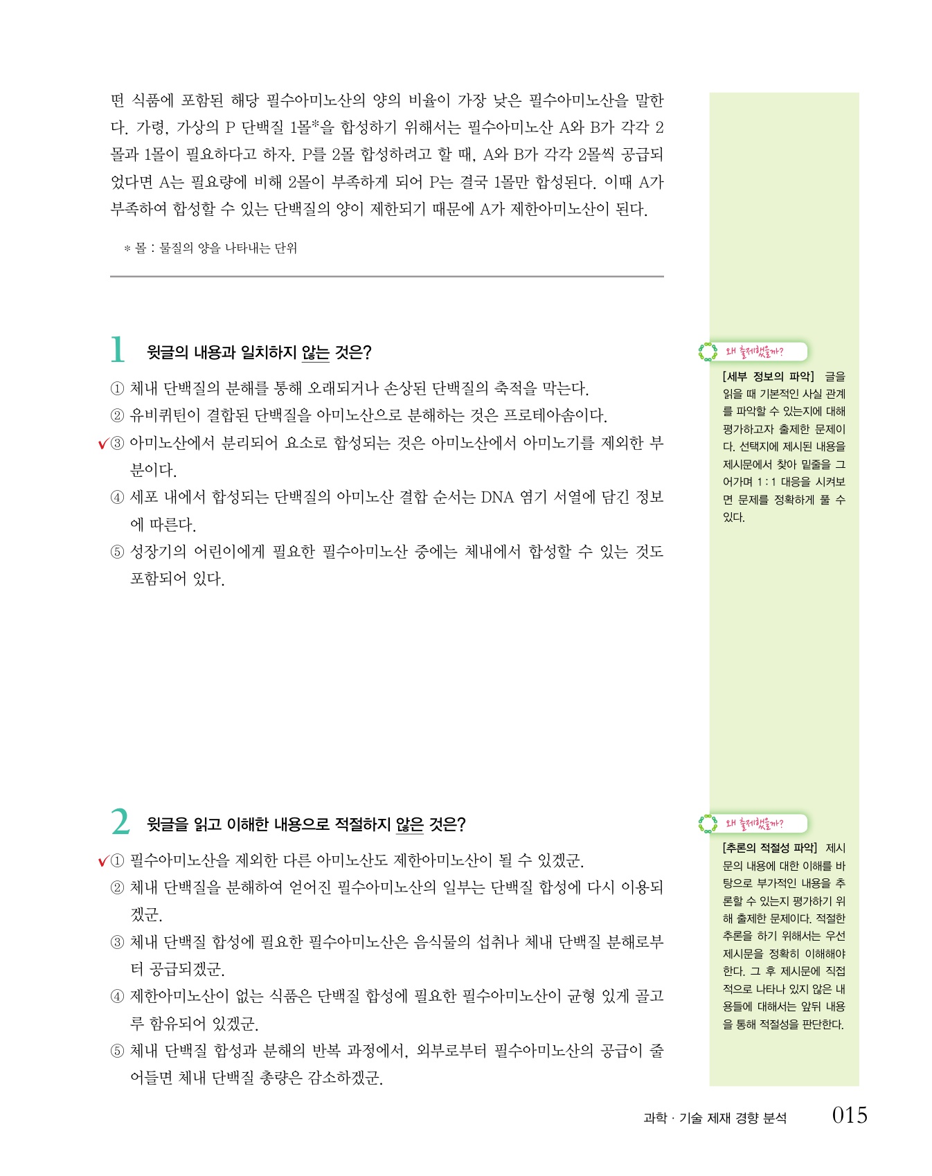 과학·기술 제재에서의 고난도 문제 유형을 실제 시험에서 오답률이 높았던 문제를 통해 확인할 수 있도록 하였습니다. 지문 분석 노트를 활용하여 제시문의 각 내용을 설명하였고, 오답률 BEST 문항 분석을 통해 학생들이 오답을 선택하게 된 이유를 분석하였습니다. 또 해당 유형의 문제 풀이 방법을 단계별로 제시하였습니다.