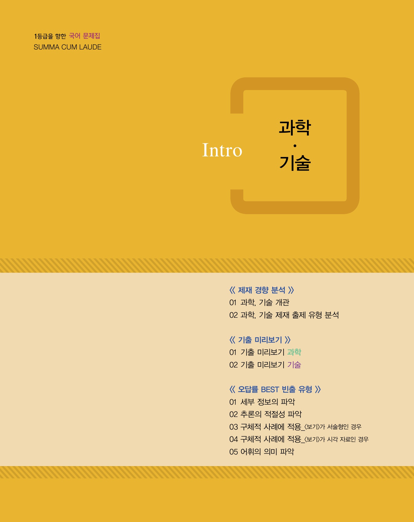 과학·기술의 각 제재별 수능 출제 경향을 분석하고, 제재의 성격에 따라 효과적으로 학습할 수 있도록 학습 방법을 수록하였습니다.